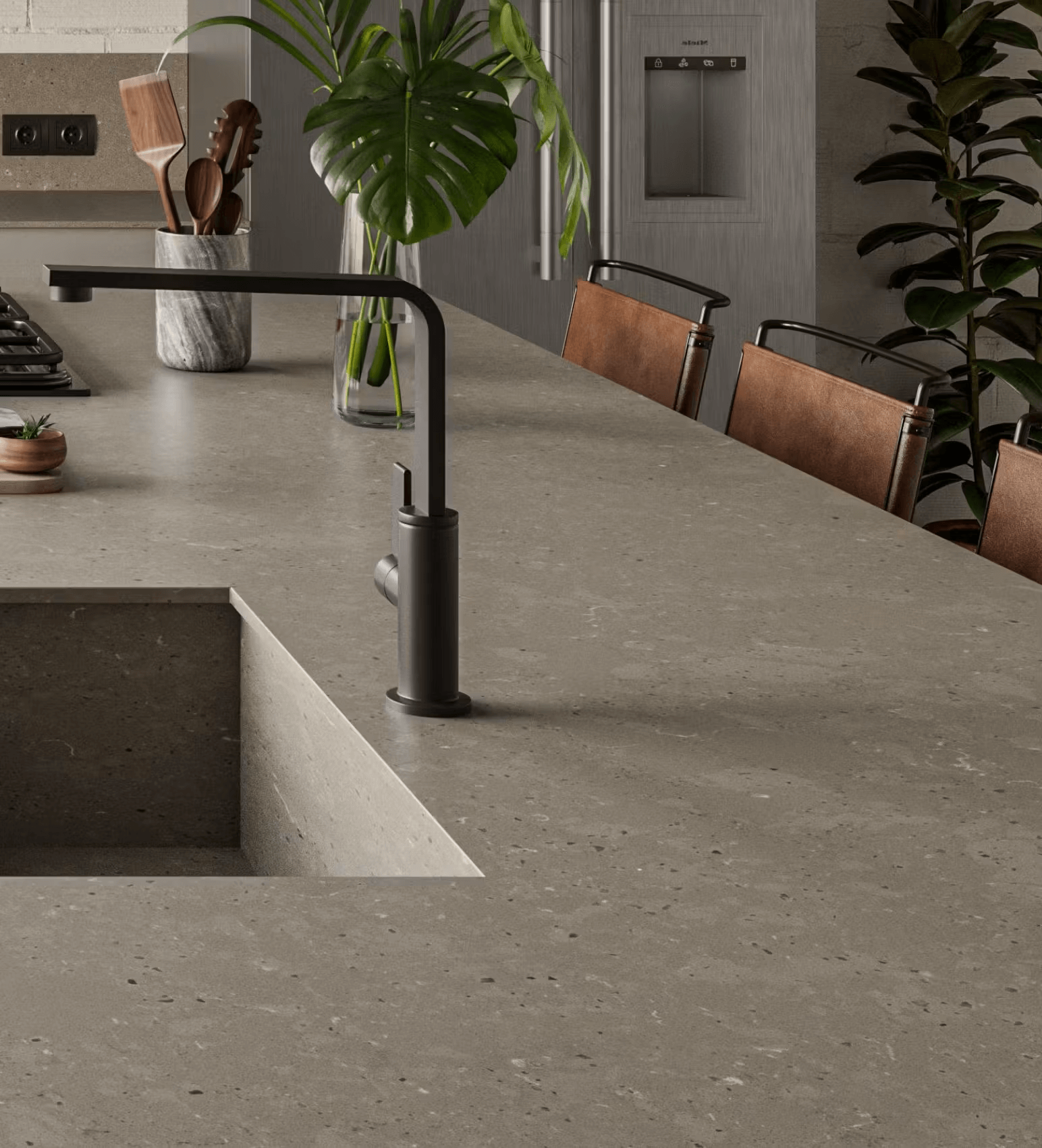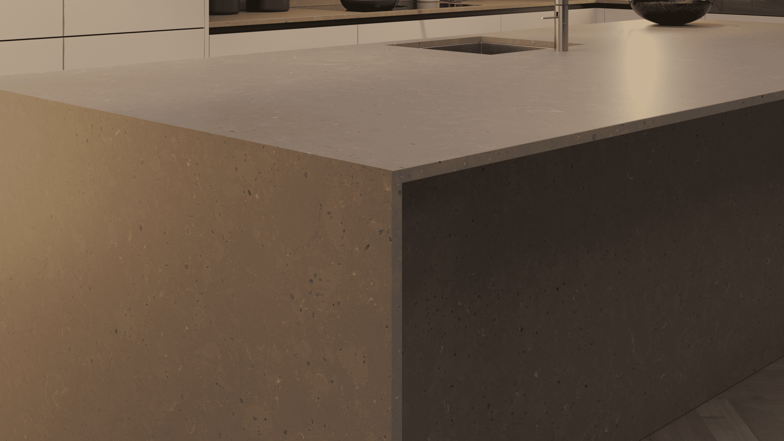 Brass Relish från Silestone är en vågad kvartsyta som kombinerar varma metalltoner med ett naturligt uttryck. Den matta, texturerade ytan i suede-finish ger en unik känsla och djup till moderna kök. Den gyllenbronsiga nyansen passar perfekt i både minimalistiska och industriella miljöer där man vill ha något distinkt och elegant.