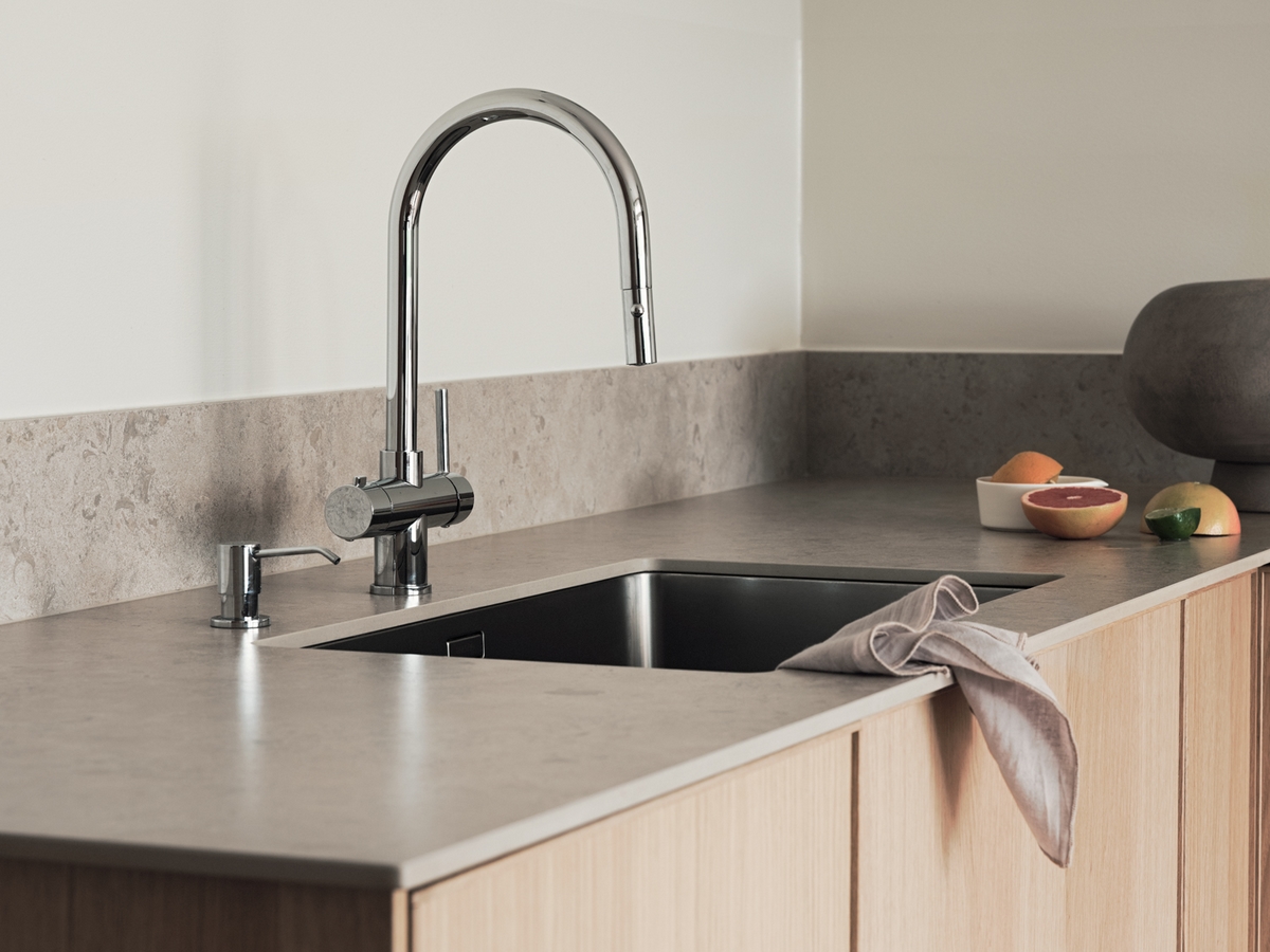 Norrvange-serien är inspirerad av nordisk kalksten och passar perfekt i moderna skandinaviska kök där naturliga material dominerar.