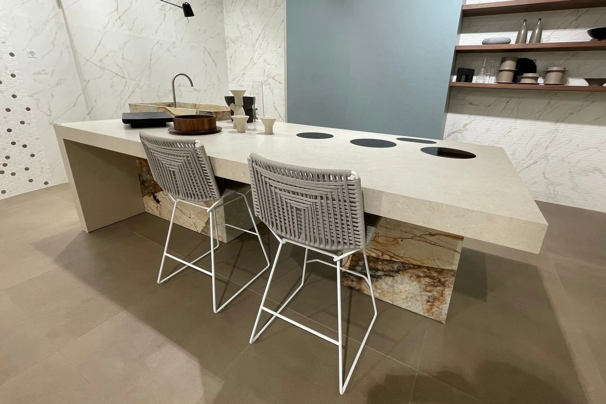 Marazzi Limestone Ivory är en keramisk bänkskiva med mjuk kalkstenskaraktär i ljus elfenbenston. Den satinmatta ytan ger ett lugnt och tidlöst uttryck som passar perfekt i skandinaviska miljöer.