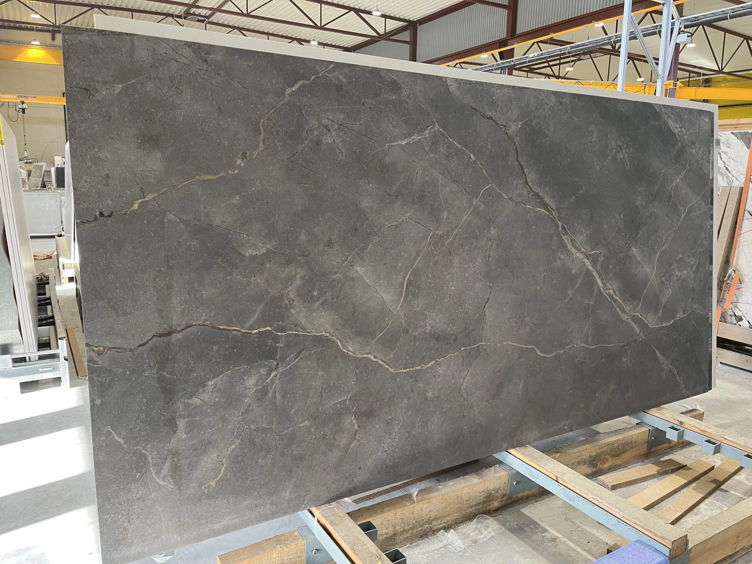 Nuovo Corso Fior Di Bosco är en keramisk bänkskiva med inspiration från italiensk marmor, i mjuka gråbruna nyanser och vit ådring.